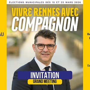 À quelques semaines du 1er tour des élections municipales, Charles Compagnon et toute l’équipe VIVRE RENNES ! ont le plaisir de vous inviter à notre grand meeting de campagne.